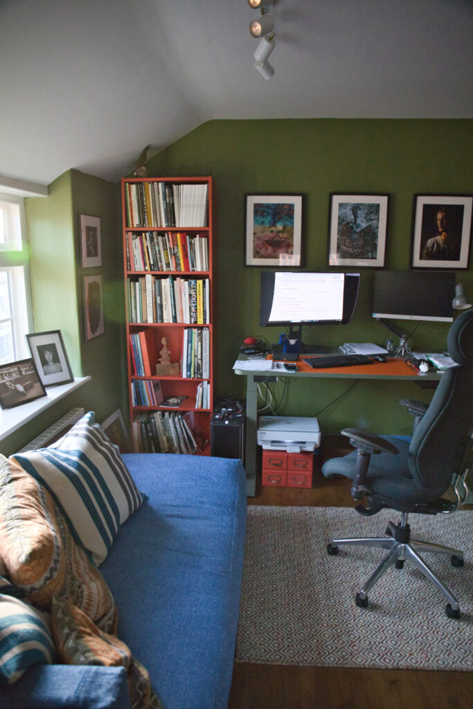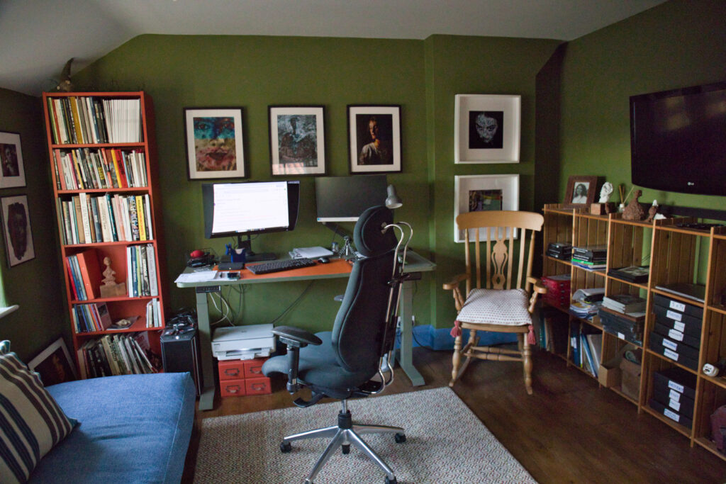 So, with all that in mind I decided to create both a photographic studio and a more practical space at home. My wife has also moved into retirement so her old office and adjoining box room became free. I took out the middle wall and two rooms became one. These are all located at one end of the house and so work well together – the photo studio downstairs and workshop now above. It’s taken quite a bit of work to pull it together but I’m just about there now and delighted with the results. Rubbish photos but here’s what it all looks like: